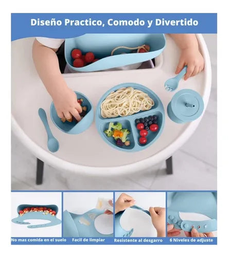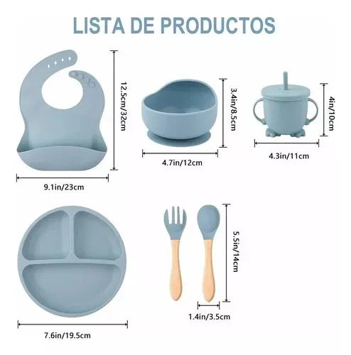 Este completo set de alimentación incluye platos, vasos, cucharas y accesorios esenciales para las primeras etapas de tu bebé. ¡Haz que cada comida sea más fácil y divertida! 🎉