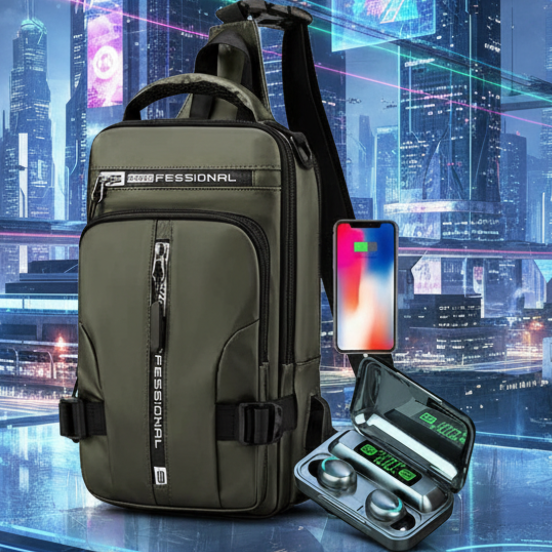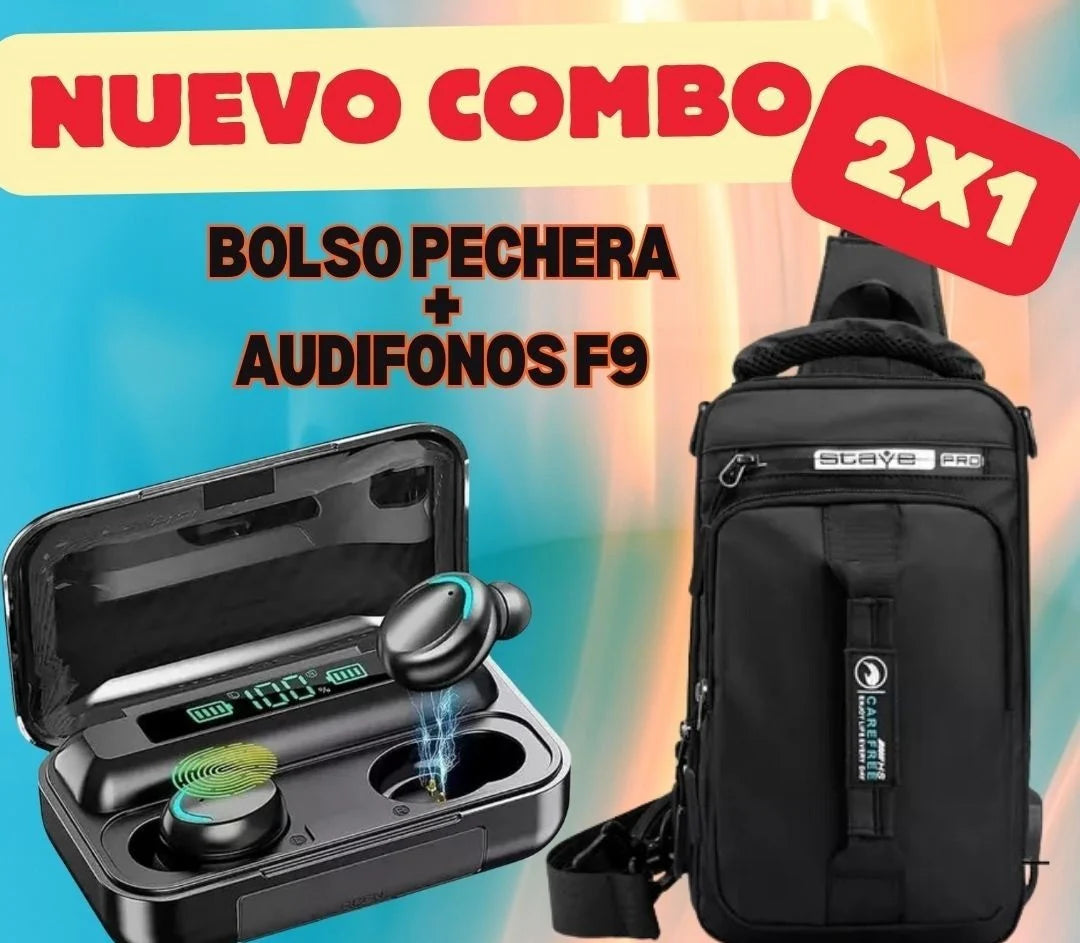 "SUPER COMBO: BOLSO PECHERA Y AUDÍFONOS F9 PARA LLEVAR TU ESTILO MÁS ALLÁ 🏅👜"